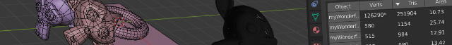 1 commentairePar défaut, Blender n'affiche que les statisques de l'objet actif. Mais dès lors qu'on s'intéresse à la modélisation temps réel, il devient intéressant d'avoir un aperçu du polycount de toute la scène en cours, ainsi que de prendre connaissance des maillages les plus lourds.